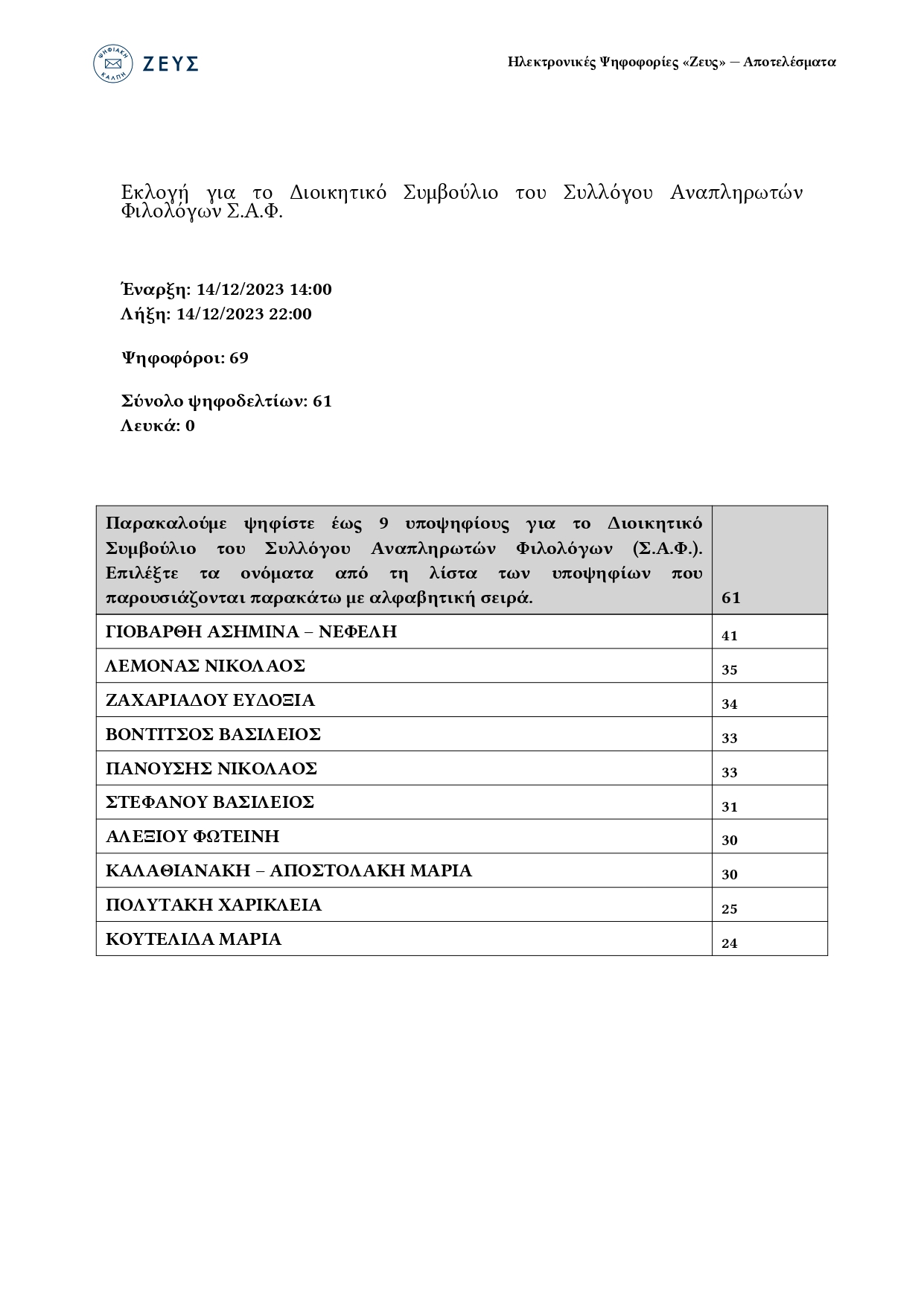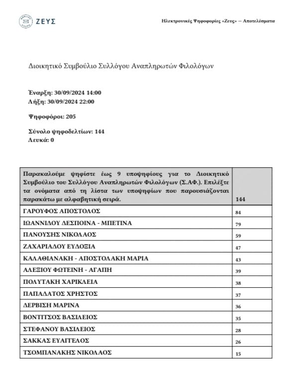 Αποτελέσματα Εκλογών ΣΑΦ 2024